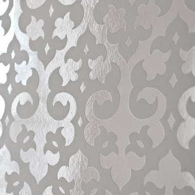 In my quest for wallpaper, I came across some interesting looking ones from Brocade Home. They're like FOIL paper and you can slightly see your reflection in them.