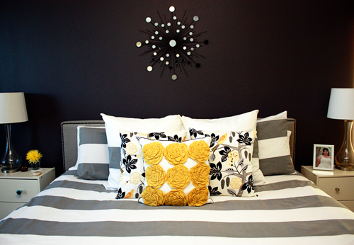 On another note, Elsa from Casa Greer sent us some pretty pictures of her home to share with all of you on MadeByGirl! I like this home a lot because her decor style is bold & she definitely has good use of color throughout. My favorite is her YELLOW bedroom dresser, how cute! Hope you're inspired, let Elsa know what you think of her place!